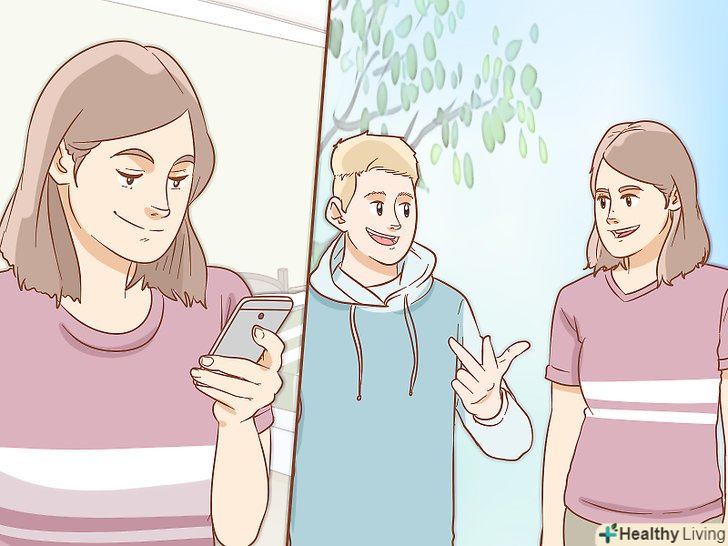 Плануйте особисті зустрічі.щоб не отримувати основну частку спілкування з інтернету, важливо регулярно взаємодіяти з людьми на особистому і ближчому рівні. Це можливо тільки при особистих контактах.[19]- Влаштовуйте зустрічі з друзями і родичами. Витратьте час, заощаджений на використанні телефону, для планування заходів. Так ви зможете направити свої сили на більш продуктивні і корисні справи.