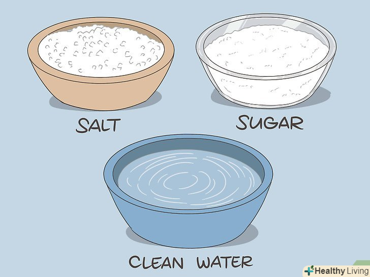 Оральна Регідратаційна сіль ( ОРС) - це спеціальний розчин, до складу якого входять цукор, сіль і чиста вода. Цей засіб може допомогти відновити рівень рідини в організмі, яку він втратив у великій кількості внаслідок діареї або блювоти. Дослідження показують, що розчин ОРС не менш ефективний, ніж внутрішньовенне введення рідини при лікуванні зневоднення.[1] ви можете приготувати розчин ОРС, використовуючи куплені в аптеці засоби, наприклад, педіаліт, інфаліт і натураліт. Ви також можете зробити розчин ОРС вдома, використовуючи чисту воду, сіль і цукор.