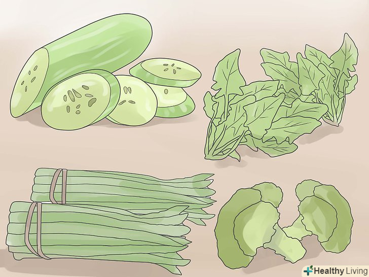 Їжте побільше багатих клітковиною продуктів.купуйте свіжі овочі при будь-якій можливості. Ретельно мийте їх, їжте сирими, приготованими на пару або на грилі. Багаті клітковиною овочі послужать свого роду" мітлою", яка вимете з Вашого організму токсини, шкідливі бактерії і грибки. Їжте більше:[2]- Огірків, спаржі, брокколі і шпинату.