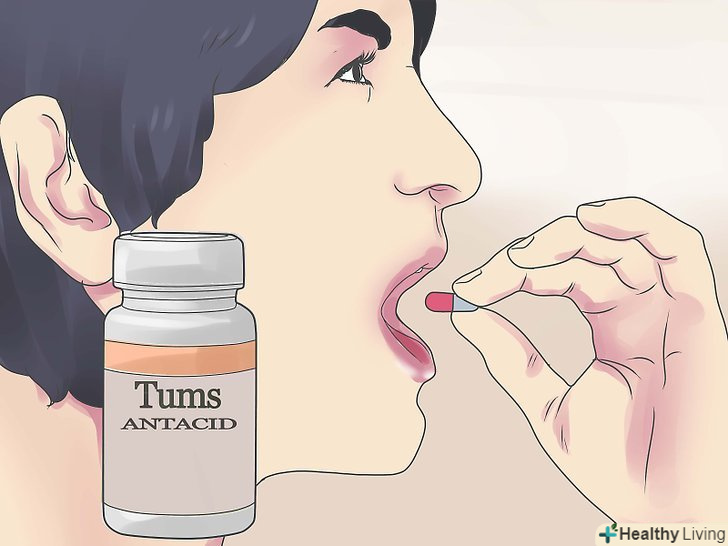 Приймайте безрецептурні антациди, поки не отримаєте рецепт на більш серйозне засіб. Такі препарати полегшать тяжкість симптомів. Наприклад, приймайте таблетки "Tums" - їх треба повільно розжовувати по 2-4 за раз (але не більше 15 за день).- Не приймайте безрецептурні болезаспокійливі, вони можуть лише погіршити ваш стан. Якщо біль занадто сильна, зверніться до лікаря.