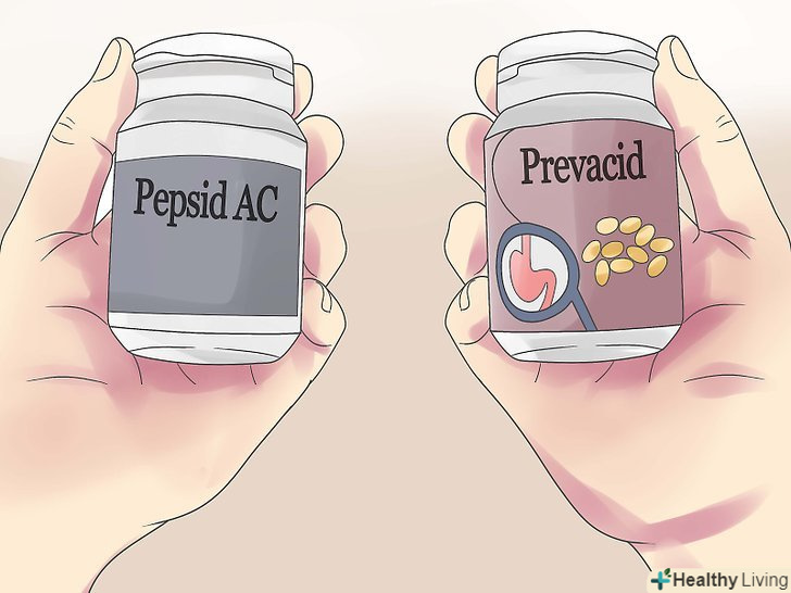 Приймайте антирефлюксні безрецептурні препарати.так, кислотний рефлюкс можна лікувати антацидами (Tums або Pepto-Bismol), але на постійній основі їх використовувати не варто, так як можуть мати місце бути серйозні побічні ефекти. Хронічний кислотний рефлюкс, який також може призвести до розвитку езофагіту, слід лікувати за допомогою двох видів безрецептурних препаратів:[5]- Перший тип: Н2-блокатори, антагоністи гістаміну. До таких ліків можна віднести Pepcid AC (до 2 таблеток по 10 мг на добу), Axid AR (до двох таблеток по 150 мг в 24 рази) і Zantac 75 (до двох доз по 150 мг кожна в таблетках або сиропі на добу).