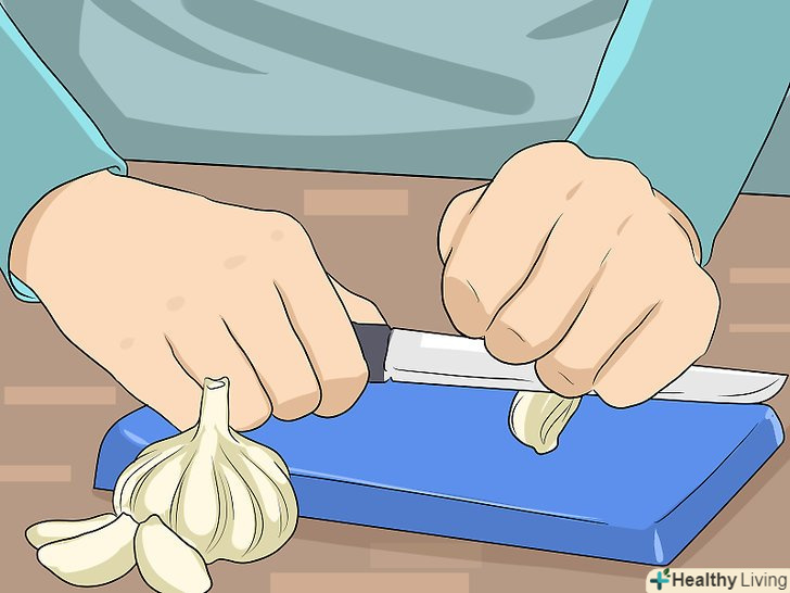 Додавайте свіжий часник в страви.часник можна використовувати в самих різних формах-від свіжого часнику і приправ до гранульованого часнику і часникової солі. Однак найкраще приймати часник в свіжому вигляді для отримання аллііна, який допомагає боротися з інфекціями. Додавайте 2-4 грами свіжого подрібненого часнику, щоб посилити аромат страви.- Приправте рубаним часником спагетті, запечену курку або смажену спаржу.