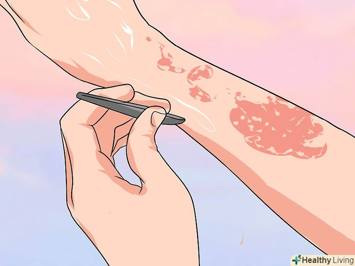 Не тріть і не чешіть пошкоджену ділянку. Скловолокно може викликати сильний свербіж шкіри. Тому у вас може виникати бажання чесати пошкоджену ділянку шкіри. Однак не варто цього робити. В іншому випадку ви посилите проблему. Скловолокно складається з найдрібніших частинок скла. Тому, чинячи тиск на пошкоджену ділянку шкіри, ви сприяєте тому, що ці дрібні частинки потрапляють в більш глибокі шари шкіри.[1][2]