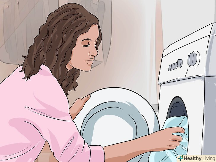 Виперіть одяг і будь-які інші матеріали, які стикалися зі скловолокном.одяг, яка стикалася зі скловолокном, слід зберігати окремо від речей у вашому гардеробі. Виперіть одяг відразу після роботи зі скловолокном. Періть такі речі окремо від інших предметів одягу. Такі дії допоможуть запобігти поширенню частинок скловолокна і пов'язане з цим роздратування.[12]- Якщо на предметі одягу багато частинок від скловолокна, замочіть цю річ перед пранням, щоб видалити бПрольшую частина залишків скловолокна.