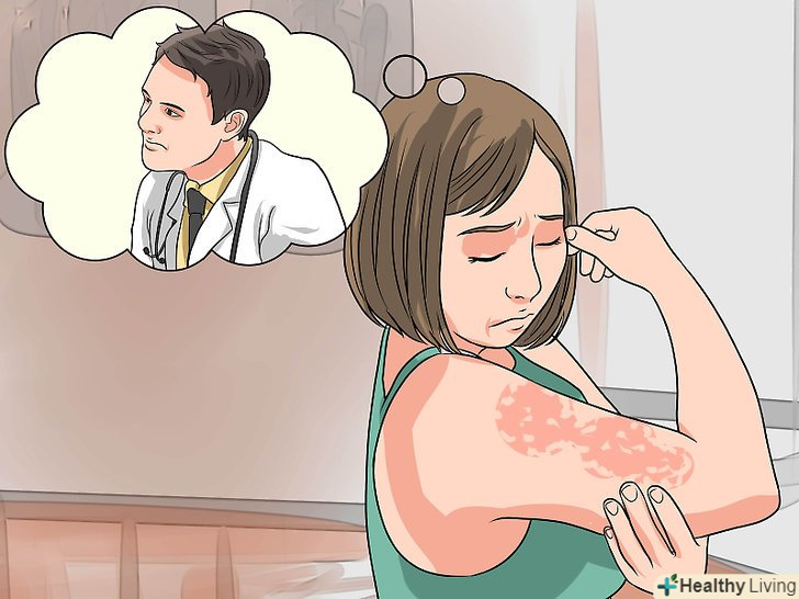 Зверніть увагу на пошкоджену ділянку шкіри.дуже ймовірно, що після зіткнення зі скловолокном ви будете відчувати біль і роздратування, проте симптоми дуже швидко зійдуть нанівець, якщо ви зробите необхідні заходи. Однак якщо свербіж і подразнення зберігаються, зверніться за медичною допомогою.[14]