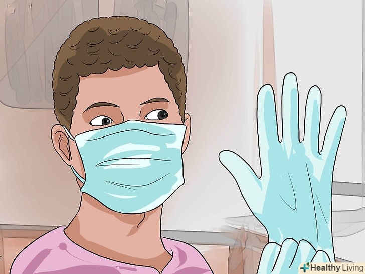 - Одягайте захисний костюм, окуляри і маску або респіратор під час прибирання робочого місця, щоб частинки скловолокна не потрапили на шкіру, в очі або легені.[13]