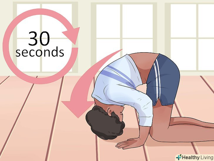 Спробуйте виконувати маневр "напівсальто".ця вправа відома також як маневр Фостера, і на відміну від маневру Еплі, при його виконанні не потрібно помічник. В одному дослідженні було встановлено, що ті пацієнти, які виконували обидва маневри, мали полегшення симптомів, вони відчували слабке запаморочення та менше ускладнень, ніж ті, хто практикував лише маневр Фостера. Можливо, вам доведеться виконати цю вправу кілька разів, перш ніж ви відчуєте деяке полегшення. Дана вправа виконується наступним чином:[19][20]- Опустіться на коліна і кілька секунд дивіться вгору на стелю.
