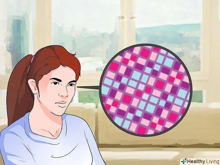 Подивіться в одну точку.таким чином ви зможете придушити запаморочення. Завдяки цьому ваш мозок зможе сконцентруватися на нерухомому об'єкті, а тіло знайде відчуття рівноваги. Танцюристам часто радять дивитися в певну точку при виконанні швидких обертань. Це дозволяє їм обертатися, не відчуваючи запаморочення. Даний прийом допомагає і при вертиго: затримайте погляд на одній точці під час нападу, і через деякий час запаморочення вщухне. Поступите наступним чином:[23]- Подивіться прямо перед собою і сфокусуйте погляд на чому-небудь (наприклад, на невеликій кольоровій точці або гудзику), що розташоване на рівні ваших очей.
