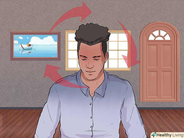 Виконуйте вранці вправу"очна пов'язка".між очними м'язами і внутрішнім вухом існує зв'язок, яка допомагає нам зберігати рівновагу, Коли ми рухаємо головою. Однак частинки у внутрішньому вусі викликають відчуття руху, хоча ми залишаємося на місці, що змушує очі рухатися і створює враження того, що все навколо обертається. Тому важливо зміцнити очні м'язи. Згодом вправа знизить чутливість каналу внутрішнього вуха, що, в свою чергу, послабить напади вертиго і зробить їх більш рідкісними.[22]- Відразу по пробудженні на 20 секунд прикрийте одне око долонею, а другим оком подивіться вдалину і сфокусуйте погляд на якійсь віддаленій точці. Потім прикрийте іншою рукою друге око і повторіть вправу. Виконуйте вправу приблизно 10 разів щоранку.