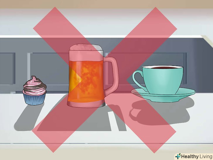 Уникайте речовин, які впливають на кровообіг в головному мозку.до таких речовин відносяться кофеїн, шоколад, алкоголь і наркотики.[26]- Ці речовини змушують нервові закінчення набухати, через що кровоносні судини стискаються. Це посилює запаморочення. Якщо ви вживаєте що-небудь з перерахованого вище, не робіть цього на голодний шлунок, щоб не посилити симптоми.
