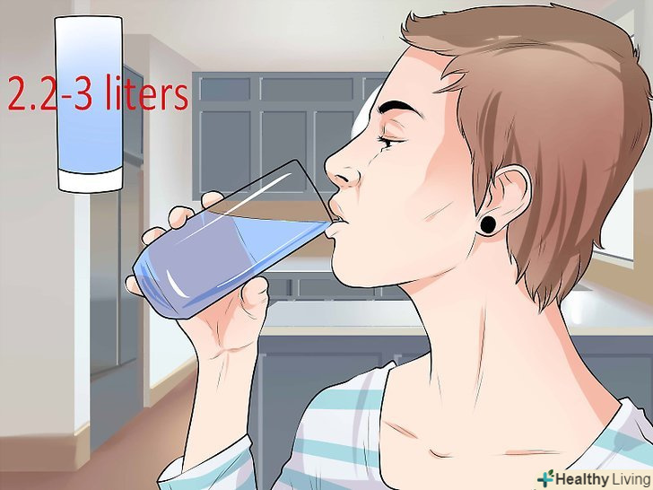 Пийте воду.Вертиго і запаморочення можуть бути викликані зневодненням, оскільки нестача води призводить до зменшення кількості крові, через що мозок отримує менше кисню. Крім того, розташована у внутрішньому вусі система підтримки рівноваги використовує в своїй роботі рідина і орієнтується на її рівень, а мозок інтерпретує одержувані від неї сигнали і по ним судить про рівновагу тіла. Щоб зменшити запаморочення, пийте більше рідини, особливо під час занять спортом і в разі діареї.[5]- Організму потрібно 2,2-3 літри рідини в день. Хоча можна пити різні рідини, найкраще підходить проста вода. У ній немає калорій і кофеїну, і на відміну від ряду інших напоїв (таких як деякі газовані напої, кава, чай і соки) вона не має сечогінну дію.[6]