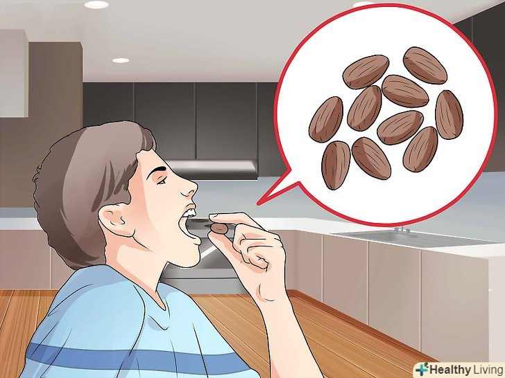 Їжте більше мигдалю.мигдальні горіхи багаті вітамінами А, B і E. їжте по п'ять горішків в день в цілому або подрібненому вигляді (наприклад, можна кришити їх в різні страви), і вам буде простіше контролювати напади вертиго.[9]- Хоча механізм дії мигдалю до кінця не вивчений, є припущення, що вітаміни B і E допомагають позбутися від вільних радикалів, які викликають вертиго.