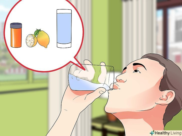 Приготуйте напій від нудоти.якщо вертиго супроводжується нудотою і блювотою, насипте в стакан (250 мілілітрів) теплої води 4 розмелених кульки чорного перцю, додайте 7-8 крапель лимонного соку і дрібку солі. Як слід перемішайте напій перед вживанням.[12]- До цього способу варто вдаватися лише в разі гострого нападу вертиго, він не підходить для щоденного застосування. Даний напій приглушує нудоту за рахунок того, що лимонний сік і сіль заспокоюють шлунок.