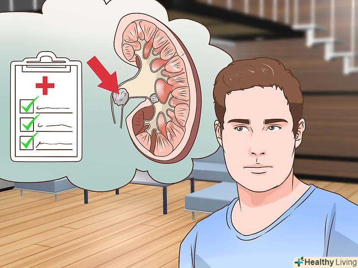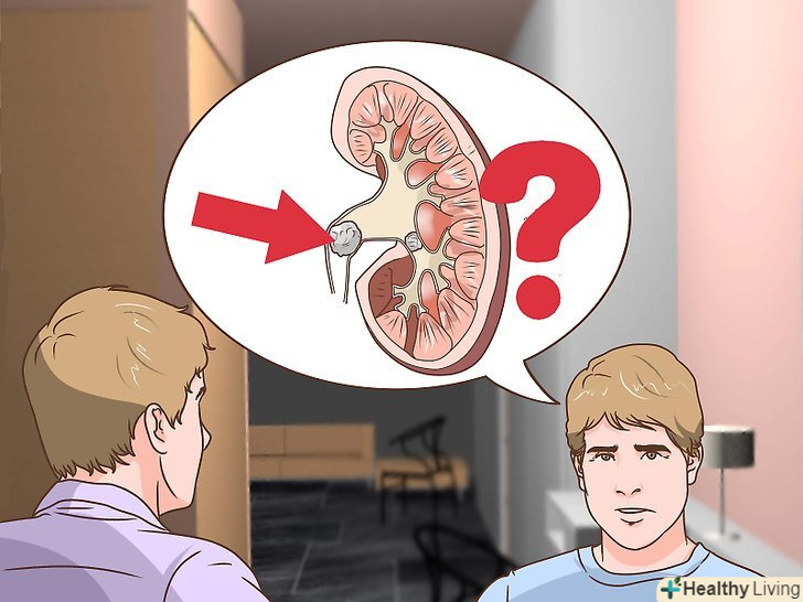 Відвідайте лікаря для визначення діагнозу.при відсутності лікування камені в нирках можуть викликати все більш сильний біль. Якщо ви підозрюєте, що у вас камені в нирках, необхідно без зволікання звернутися до лікаря. Лікар зможе діагностувати нирковокам'яну хворобу за характерними симптомами, результатами аналізу крові і сечі і за допомогою методів медичної візуалізації, наприклад комп'ютерної томографії.[16]- Комп'ютерна томографія являє собою найбільш точний метод виявлення каменів в нирках. Лікар зможе визначити, де саме розташовані камені, а також їх величину.[17]