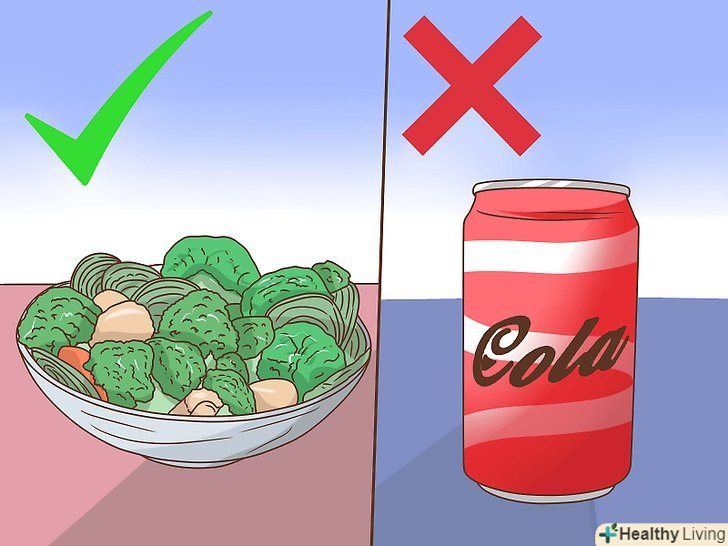 Дотримуйтесь здорової дієти.нездоровий раціон харчування підвищує ризик утворення каменів у нирках. Цей ризик збільшується в тому випадку, якщо ви вживаєте велику кількість білків, а також солі і цукру.[10] Подумайте про свою повсякденну їжу і визначте, чи є вона одним з факторів ризику.- Згідно з останніми рекомендаціями, слід утримуватися від солодких газованих напоїв, які містять фосфорну кислоту, наприклад кока-Коли, так як вони підвищують ризик нирковокам'яної хвороби.[11]