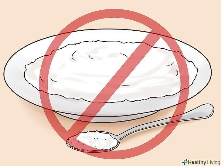 Уникайте продуктів з великим вмістом цукру.як правило, такі продукти містять багато простих вуглеводів, які значно підвищують рівень цукру в крові. Такі продукти висококалорійні, проте не містять ніяких корисних елементів для організму.- Уникайте вживання продуктів, насичених простими вуглеводами, особливо на голодний шлунок, оскільки це призведе до піку глікемії.