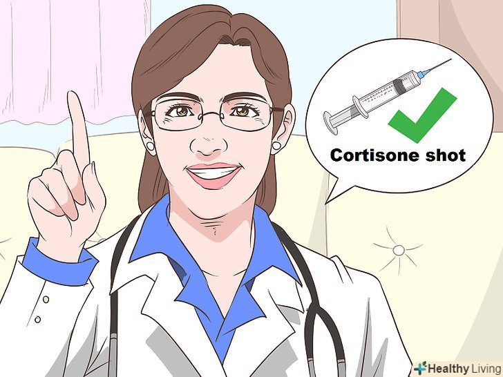 Запитайте лікаря, чи показані вам ін'єкції кортизону.якщо оніміння, поколювання або болі заважають вам виконувати повсякденні справи, в деяких випадках допомагають ін'єкції кортикостеріодів. Укол кортизону може зняти гостре запалення, проте його дія носить тимчасовий характер.[10]- У перші 1-2 дні після уколу кортизону в місці ін'єкції може виникнути болючість або набряк. В цьому випадку кожні три години можна прикладати до місця уколу лід на 15 хвилин.