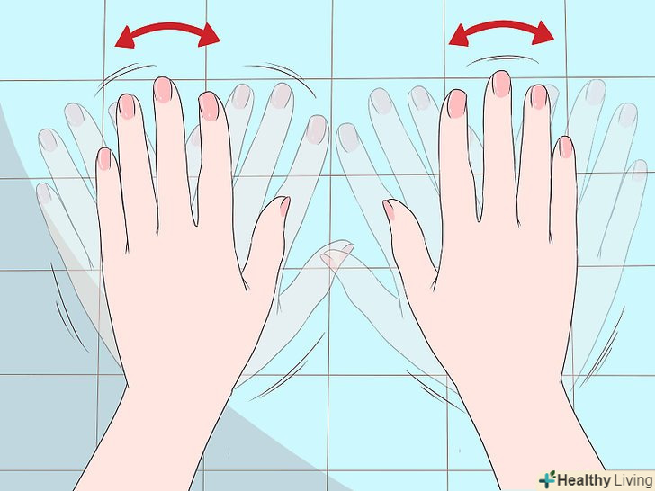 Занурте руки в теплу воду на 2-3 хвилини.якщо оніміння рук не пройшло, потримайте їх під струменем теплої води температурою приблизно 32-38 °C. Вода повинна бути саме теплою, а не гарячою. Тримаючи руки під водою, повільно помасажуйте кисті.[3]- Тепла вода покращує кровообіг і діє заспокійливо. Тримати руки в теплій воді також рекомендується при синдромі зап'ястного каналу і хвороби Рейно.