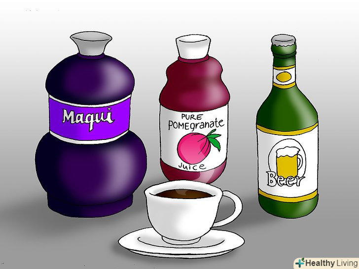 Пийте напої, багаті поліфенолами.напої - це сконцентровані джерела легко засвоюваного поліфенолу.- Вибирайте фруктові соки, що не містять цукор. Відмінним вибором є чистий сік граната, чорниці, червоного винограду, а також нефільтрований яблучний сік і сидр.