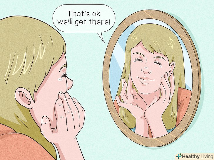 Будьте ласкаві до себе.постійні твердження самому собі, що ви не зможете щось зробити, - це погана Когнітивна звичка, яка зміцнює вашу віру в те, що ви дійсно не зможете. Пам'ятайте, якщо будете до себе занадто суворим за те, що вам важко або у вас трапляються рецидиви, то нічого корисного це вам не принесе, а може тільки погіршити звичку.[44]- Якщо ви помітили, що критикуєте себе, згадайте, що речі, які здаються суперечливими один одному, можуть співіснувати. Наприклад, уявіть, що ви хочете позбутися звички їсти нездорову їжу, але поступилися бажанням і з'їли пачку чіпсів на обід. Звичайно ж, легко засуджувати себе за це. Але якщо ви будете добрим до себе, ви визнаєте свою помилку і усвідомлюєте, що це ще не провал. Не потрібно продовжувати піддаватися спокусі, тому що ви одного разу зробили помилку.