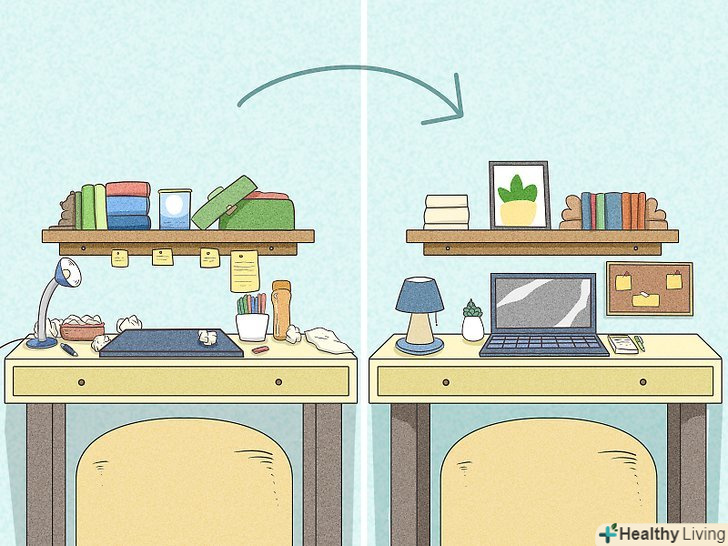 - Хороший спосіб уникати поганих звичок-знайти спосіб змінити декорації і подивитися, чи стане погана звичка менш привабливою. Наприклад, якщо ви любите курити у себе на терасі, приберіть крісло, в якому ви зазвичай сидите в таких випадках, і поставте на його місце вазу з квіткою. Якщо ви схильні переїдати, коли сидите на певному місці в кухні, пересядьте на інше місце або переставте меблі так, щоб ви дивилися в іншому напрямку, відмінним від того, в яке зазвичай дивитеся, коли їсте. Невеликі зміни в оточенні можуть зробити звичку менш механічною і змушують розум переоцінити те, що відбувається.[28]