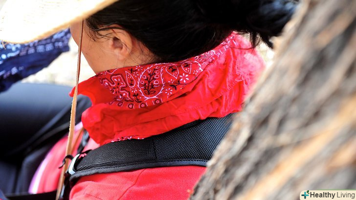Прикладіть прохолодні вологі шматки тканини на найважливіші області тіла потерпілого.це області з тонкою шкірою, добре поглинають вологу. Такі області включають в себе:- Зап'ястя