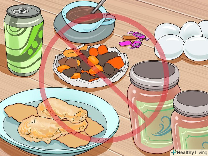 Слідкуйте за тим, скільки ви їсте солодких і кислих продуктів і напоїв. солодкі і кислі продукти часто стають причиною виникнення карієсу, тому стежте за тим, які продукти ви їсте. Пам'ятайте, що нова каріозна порожнина може утворитися в уже запломбованому зубі (прямо під пломбою). Іноді пломби ламаються і деформуються, щоб цього уникнути, потрібно стежити за гігієною порожнини рота. Не забувайте чистити зуби після прийому їжі. [22]- Якщо у вас немає можливості почистити зуби, хоча б прополощіть рот. Пийте більше води, намагайтеся менше перекушувати і не їжте липкі продукти.