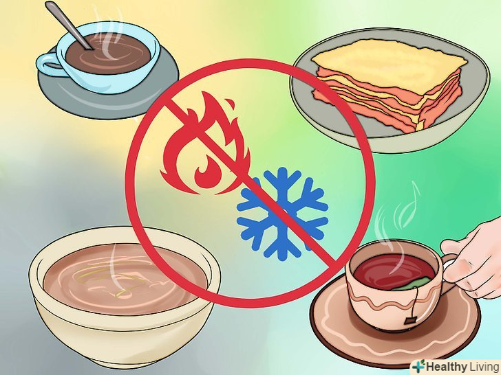 Не варто їсти занадто холодну або занадто гарячу їжу. запломбований зуб, швидше за все, буде дуже чутливий до перепадів температури в перші кілька днів після лікування. Тому не варто їсти або пити щось гаряче або холодне, інакше чутливість може перерости в біль. [10]- Крім того, гарячі і холодні продукти можуть порушити процес адгезії (тобто злипання тканин зуба з пломбувальним матеріалом). При застосуванні композитних матеріалів роблять спеціальне протруювання емалі, через якого відбувається зв'язування пломбувального матеріалу і зуба. Цей процес може тривати 24 години, тому в цей час краще не пити і не їсти нічого гарячого і холодного.