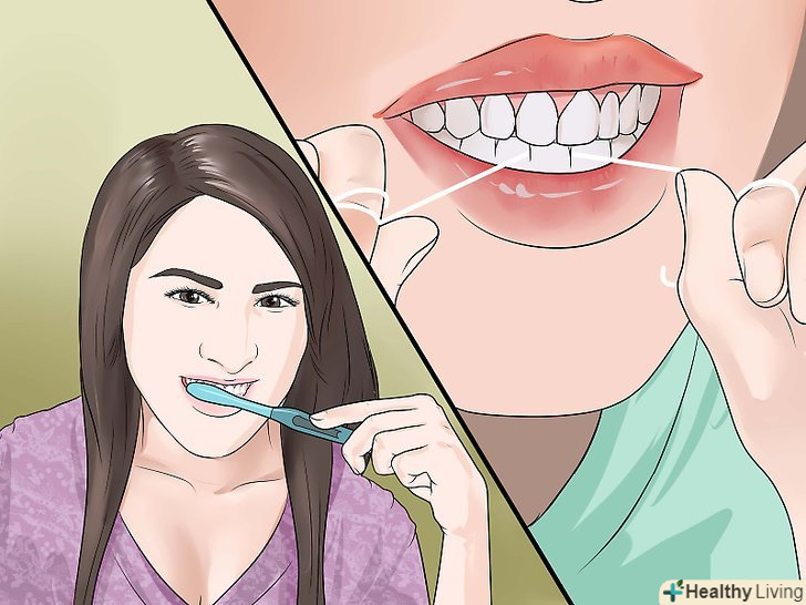 Чистіть зуби щодня зубною щіткою та зубною ниткою. Обов'язково користуйтеся зубною ниткою після їжі, щоб зуби і ясна залишалися здоровими. Хороша гігієна дозволить уникнути утворення нових каріозних порожнин.- Намагайтеся чистити зуби зубною ниткою після кожного прийому їжі. Зубна нитка допоможе позбутися від зубного нальоту і застряглих шматочків їжі, які можуть бути причиною розмноження мікрофлори порожнини рота і пошкодження пломби. Якщо у вас немає з собою зубної нитки і щітки, пожуйте жувальну гумку. [21]