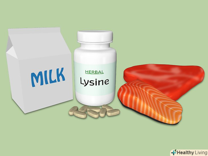 Споживайте якомога більше продуктів, що містять у великих кількостях лізин. ця амінокислота надзвичайно корисна для організму. [4]- Лізин у великих кількостях міститься в м'ясі, рибі і молочних продуктах.