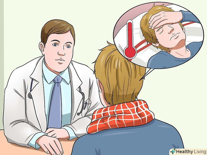Зверніть увагу на симптоми. Ви зможете швидко позбутися від спека, якщо визначите причину його появи. Зверніть увагу на всі симптоми, які ви відчуваєте поряд з жаром. Якщо ви помічаєте симптоми, які не є типовими для вірусної інфекції, наприклад, біль у горлі або біль у вусі, зверніться до лікаря для встановлення діагнозу. [13]- Негайно зверніться до лікаря, якщо ви відчуваєте такі симптоми, як сплутаність свідомості, утруднене дихання, посиніння губ або нігтів, судоми, ригідність потиличних м'язів або сильні головні болі.