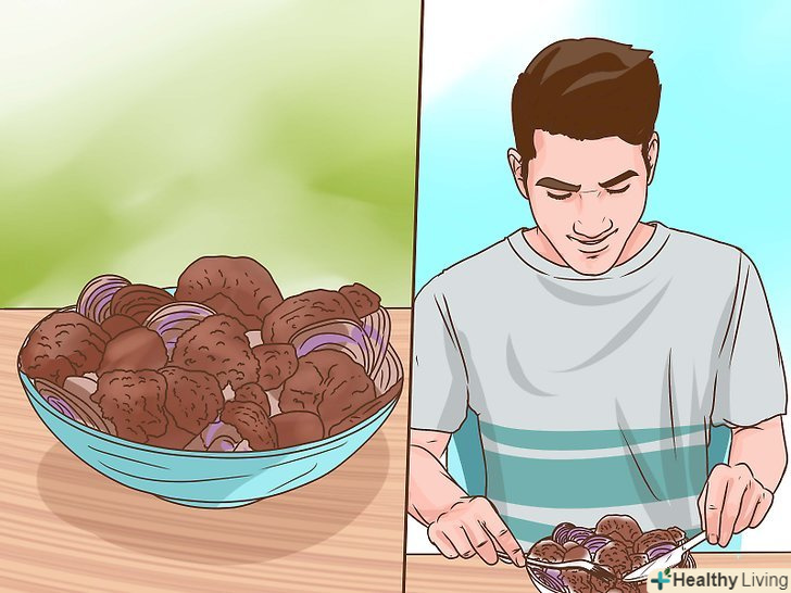 Включайте в свій раціон здорові продукти. поряд з тим, що вам доведеться відмовитися від деяких продуктів, включайте в свій щоденний раціон продукти, які допоможуть запобігти симптоми грижі стравохідного отвору діафрагми. Включайте в свій раціон пісне м'ясо, м'ясо курки без шкірки, червоне м'ясо з невеликою кількістю жиру, фарш з м'яса індички замість яловичого фаршу, а також рибу. Вибираючи яловичину, віддавайте перевагу вирізці, лопатці або корейці. Вибираючи свинину, віддавайте перевагу вирізці або відбивної. Крім того, дотримуйтесь нижчевикладених порад:- Запікайте або тушкуйте їжу, замість того, щоб смажити її.