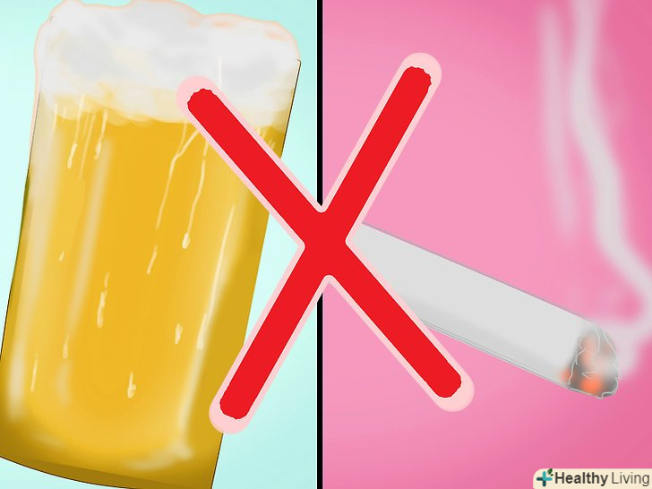 Обмежте споживанняАлкоголю і Киньте палити . якщо ви вживаєте спиртні напої та/або курите, відмовтеся від цих шкідливих звичок. [11] тютюн і алкоголь підвищують артеріальний тиск і збільшують ризик хвороб нирок, а також можуть погіршити вже наявні захворювання. [12]- Чоловікам слід обмежуватися двома, а жінкам — однією порцією спиртного в день. Одна порція відповідає невеликій (350 мілілітрів) гуртку пива, келиху (120-150 мілілітрів) вина або 40 мілілітрів міцного напою. [13]