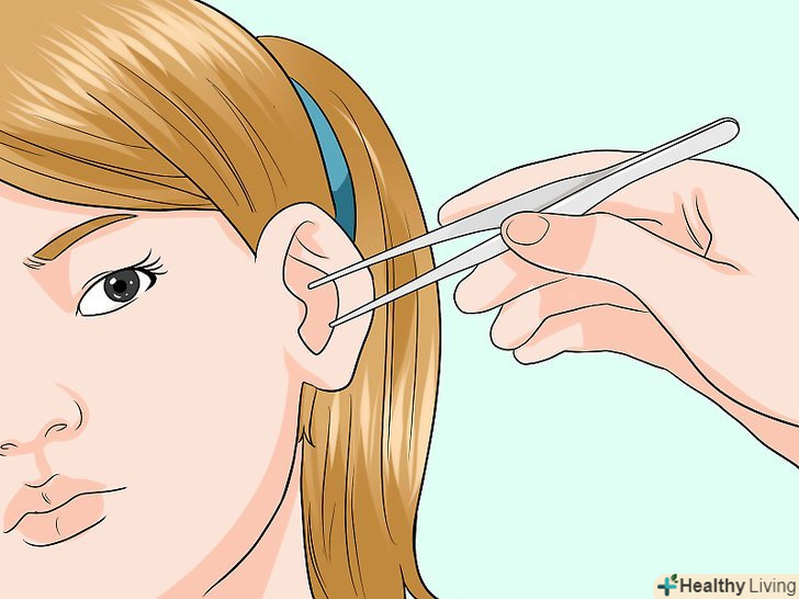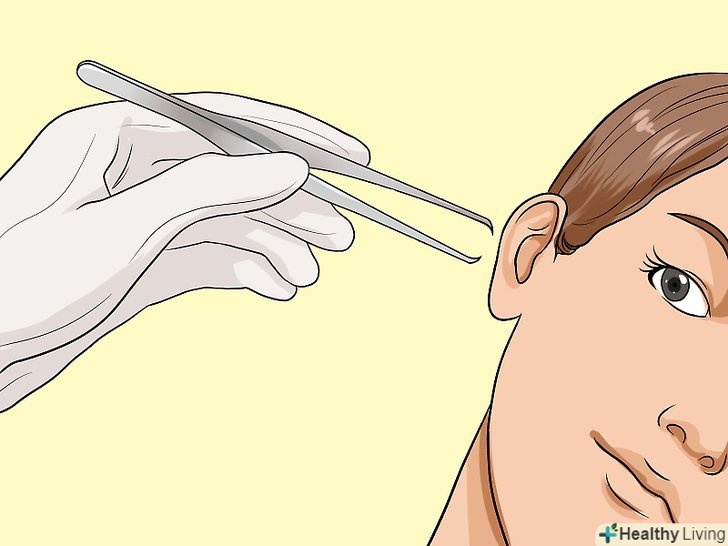 Видаліть сторонній предмет, користуючись пінцетом. цей метод слід застосовувати тільки в тому випадку, якщо з вуха виступає частина предмета, за яку можна легко вхопитися пінцетом. не просовуйте пінцет в слуховий канал. [13] даний метод краще не використовувати для того, щоб дістати що-небудь з вуха дитини. В цьому випадку зверніться в педіатра або іншого лікаря. [14]- Перед використанням очистіть пінцет, помивши його теплою водою з антибактеріальним милом. Іноді сторонні предмети можуть проткнути барабанну перетинку, а також пошкодити слуховий канал і викликати кровотечу. В цьому випадку підвищується ризик інфекції.