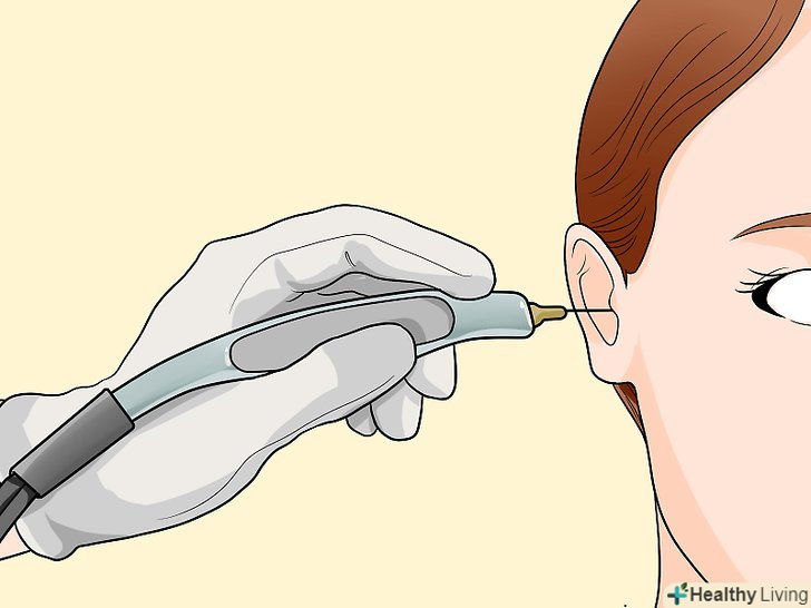 Дозвольте лікарю дістати сторонній об'єкт медичним пінцетом. хоча вам, можливо, не вдалося зробити це в домашніх умовах, лікар використовує спеціальні інструменти, більш підходящі для даного випадку.- Доктор використовує медичний пінцет і отоскоп − спеціальний інструмент, призначений для освітлення та огляду слухового каналу. Лікар зможе контролювати рухи пінцета в слуховому каналі, запобігши пошкодження важливих і досить ніжних органів. [27]