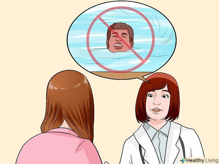 Обговоріть з лікарем необхідне лікування. після вилучення стороннього предмета з вуха лікар може порекомендувати вам не купатися і не мочити вухо протягом 7-10 днів. Це охоронить вас від інфекції. Приймаючи душ або ванну, змащуйте пошкоджене вухо вазеліном і затикайте його ваткою.- Зазвичай після першого відвідування лікар призначає ще один прийом протягом першого тижня для того, щоб переконатися в нормальному загоєнні вуха і у відсутності виділень, кровотечі або болю. [35]