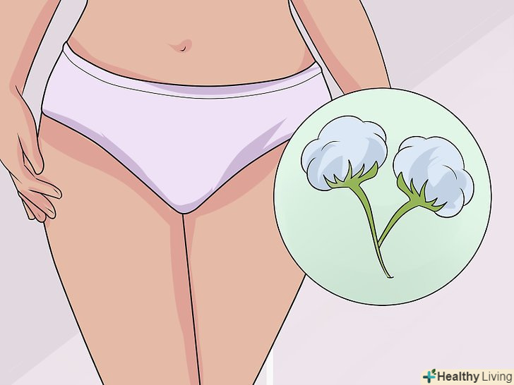 Носіть правильну нижню білизну. носіть бавовняну нижню білизну і уникайте облягаючого одягу і колготок. Дозвольте повітрю циркулювати в області геніталій, щоб там не накопичувалися волога і піт, в яких розмножуються бактерії. [24]