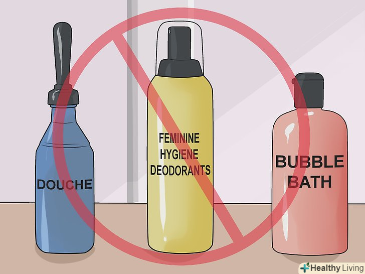 Уникайте деяких засобів для жінок. деякі косметичні продукти для жінок змінюють pH баланс сечовивідних шляхів. Деякі засоби можуть викликати подразнення або розвиток алергії на хімічні компоненти, аромати тощо. Виключіть застосування цих засобів, особливо якщо епізоди циститу повторюються. [25] [26]- Не робіть спринцювання. Вода вимиває "корисні" бактерії і призводить до зміни кислотності в області геніталій. [27]