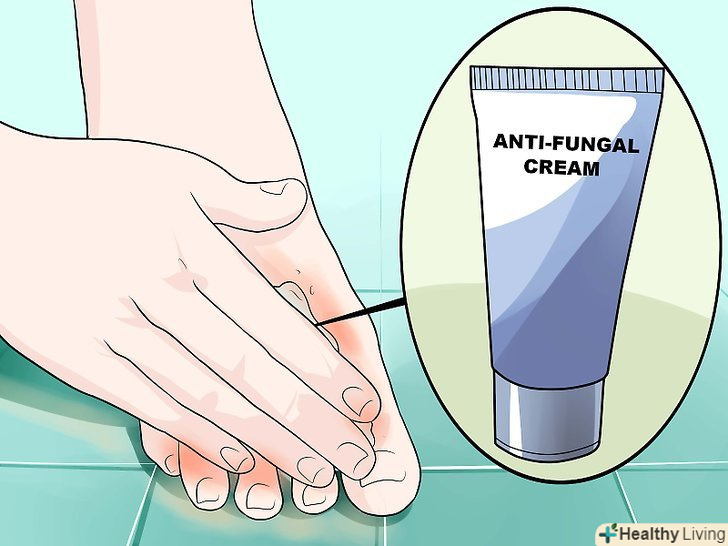 Почніть лікування медикаментозними препаратами.зазвичай з грибком досить ефективно борються препарати, що відпускаються без рецепта лікаря. Але якщо у вас досить важкий випадок, можливо, лікар випише вам і інші препарати.- Нанесіть на шкіру ніг протигрибкову мазь, спрей або крем.
