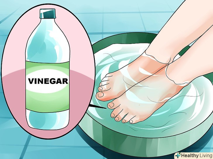- Можна робити ванночки з білим оцтом для уражених нігтів. Білий оцет має протигрибкові властивості. Потім акуратно пилкою підшліфуйте верхню поверхню нігтя і прикладіть до неї ватний диск, просочений нерозведеним білим оцтом. Цю процедуру потрібно виконувати 1-2 рази на день.[10]