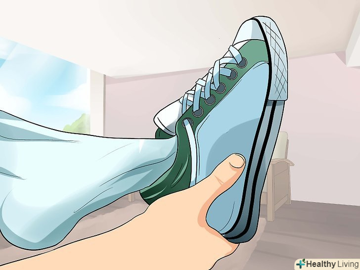 Носіть відповідне взуття.грибкові інфекції легко поширюються у вологому, погано провітрюваному середовищі. Намагайтеся частіше провітрювати і носити взуття з натуральних матеріалів, щоб шкіра ніг дихала і не потіла. Частіше міняйте шкарпетки. [12]- Викиньте старе взуття, яке може бути заражене грибковою інфекцією.