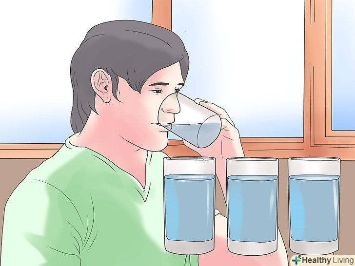 Знизьте рівень магнію у вашому організмі.якщо ви відчуваєте тільки слабкі симптоми гіпермагніємії, пийте багато води і перестаньте їсти багаті магнієм продукти на кілька днів. Однак, високий рівень магнію найчастіше спостерігається як симптом ниркових захворювань. Вам буде потрібно вилікувати основне захворювання, щоб нормалізувати рівень магнію в вашому організмі. Поговоріть зі своїм лікарем, щоб вибрати найкращий спосіб лікування.[7]- Якщо у вас є історія серцево-судинних захворювань і ви відчуваєте нерегулярне серцебиття, негайно зверніться за медичною допомогою.