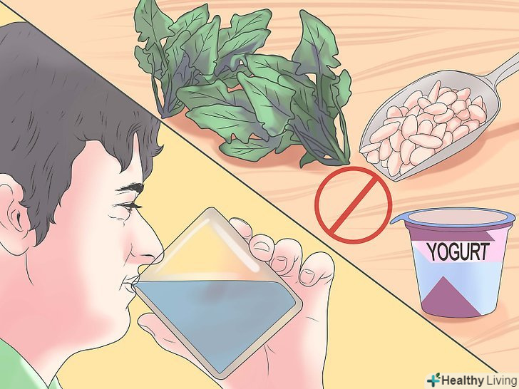 Зменшіть кількість кальцію у вашому організмі.якщо ви відчуваєте тільки слабкі симптоми надлишку кальцію, пийте достатньо води і їжте продукти з високим вмістом клітковини, щоб позбутися від констіпаціі. Вам варто утриматися від вживання продуктів з високим вмістом кальцію. Надлишок кальцію зазвичай настає в зв'язку з гіперпаратиреозом, від якого вам доведеться позбутися, перш ніж ви зможете знизити рівень кальцію в вашому організмі. Порадьтеся з лікарем про варіанти лікування.[9]- Якщо причиною надлишку кальцію у вашому організмі є іммобілізація, намагайтеся частіше рухатися або попросіть кого-небудь допомогти вам з цим.