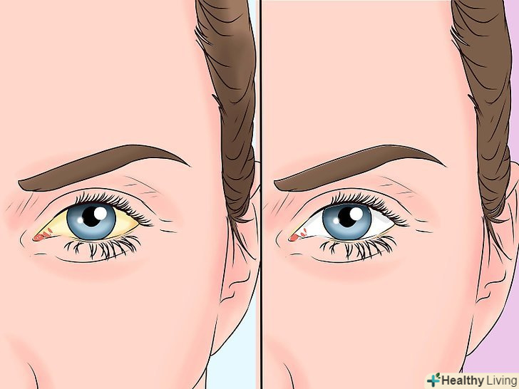Зверніться за медичною допомогою в разі жовтяниці у дитини або немовляти.діти, в тому числі маленькі, також схильні до жовтяниці. Жовтяниця нерідко зустрічається у немовлят і часто проходить сама по собі протягом двох тижнів.[6] однак сильна жовтяниця у немовляти може бути ознакою серйозних ускладнень.[7][8]- Щоб виявити жовтяницю, перевірте, чи не пожовкли у дитини шкіра і білки очей.