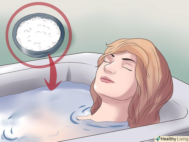 Для підсушування висипань генітального герпесу приймайте ванни з сіллю.сіль Епсома містить сірчанокислий магній та інші важливі мінерали, які корисні для підсушування, заспокоєння і очищення болячок. З цієї причини сіль Епсома важлива для полегшення больових відчуттів і свербіння, які супроводжують герпесну інфекцію.[19] далі описаний принцип застосування даного засобу.- Налийте в ванну теплої води і додайте приблизно половину склянки солі Епсома. Полежіть у ванній не менше 20 хвилин.