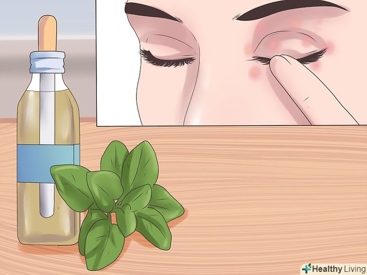 Наносите на уражену область шкіри масло материнки.масло материнки зі своїми противірусними властивостями допомагає прискорити одужання висипань герпесу.[12] Вам лише необхідно нанести це масло прямо на інфіковану ділянку шкіри за допомогою ватної палички і залишити на 10-15 хвилин. Потім слід змити масло і промокнути з шкіри надлишки води.- Масло материнки, календули або жожоба можна наносити як окремо, так і одночасно.