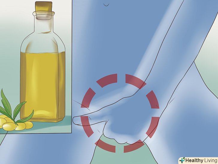 Скористайтеся оливковою олією. Оливкова олія відома своєю здатністю зволожувати шкіру. Воно багате антиоксидантами і є одним з найкращих домашніх засобів для загоєння ранок герпесу. У ньому також міститься динітрохлорбензол, який відіграє важливу роль в лікуванні герпесної інфекції.[10]- Розігрійте в каструлі склянку оливкової олії з декількома пагонами лаванди і невеликою кількістю бджолиного воску. Після охолодження нанесіть суміш на уражену ділянку шкіри. Наявність в суміші бджолиного воску має допомогти їй утриматися на місці, але вам, все ж, може знадобитися прилягти, щоб засіб не стекло з ранки.