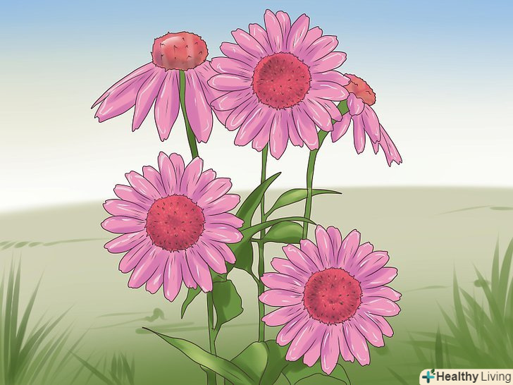 Для зміцнення імунної системи використовуйте ехінацею.[34] ехінацея є лікарською рослиною і має противірусні властивості.[35] вона відома своєю здатністю зміцнювати імунну систему. Для лікування спалахів герпесу можуть бути використані всі частини рослини ехінацеї, а саме: квіти, листя і коріння. Її можна вживати у вигляді чаю, настоянок або таблеток.- Харчові добавки з ехінацеєю у всій їх різноманітності можна знайти в аптеках, деяких супермаркетах, а також придбати через Інтернет.