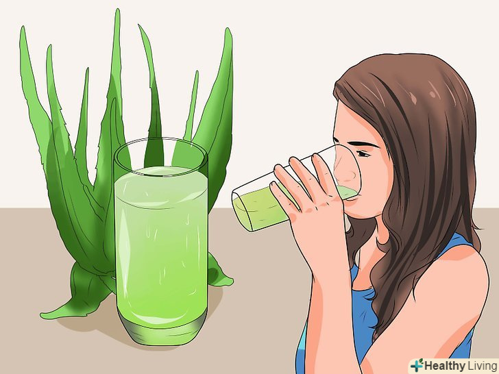 Пийте сік алое вера.візьміть натуральний сік (не гель) алое вера і випийте 1/2 склянки (120 мілілітрів). Можна потроху пити сік протягом усього дня, проте не слід випивати більше 1-2 склянок (250-500 мілілітрів) за день, оскільки алое вера має проносну дію.[20]- Дослідження показали, що сироп з алое вера допомагає при кислотному рефлюксі, він знижує запалення і нейтралізує шлунковий сік.[21]