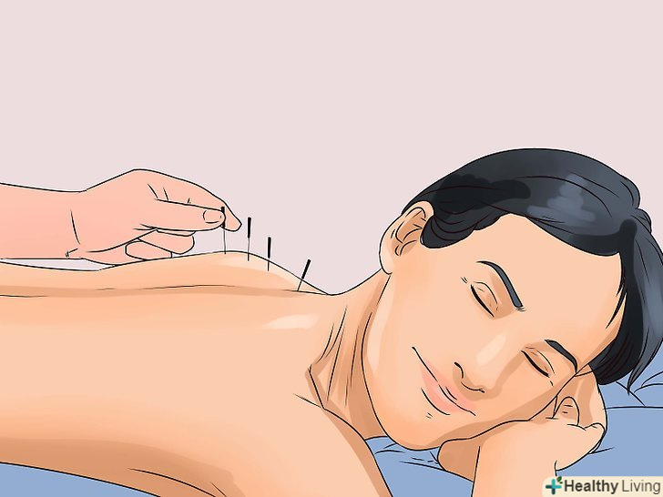 Спробуйте акупунктуру.ця традиційна медична практика дозволяє регулювати потоки енергії в організмі за допомогою тонких голок, які встромляються в різні особливі точки тіла. Біль при грижі можна контролювати за рахунок стимуляції тих точок, які знімають больові відчуття. Зверніться до кваліфікованого фахівця з акупунктури, у якого є досвід полегшення болю при грижі.[5]- Акупунктура допомагає знизити біль, проте вона не виліковує від грижі.